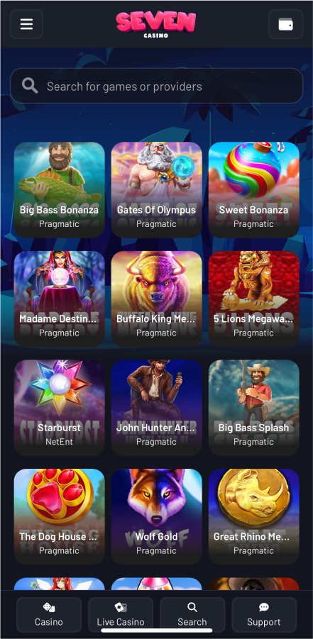 The app support agents are online around the clock and are always ready to provide you with a helping hand through 2 channels: the Seven Casino official email and a hotline phone number. No matter which option suits you better, you will be given a response within several minutes.
